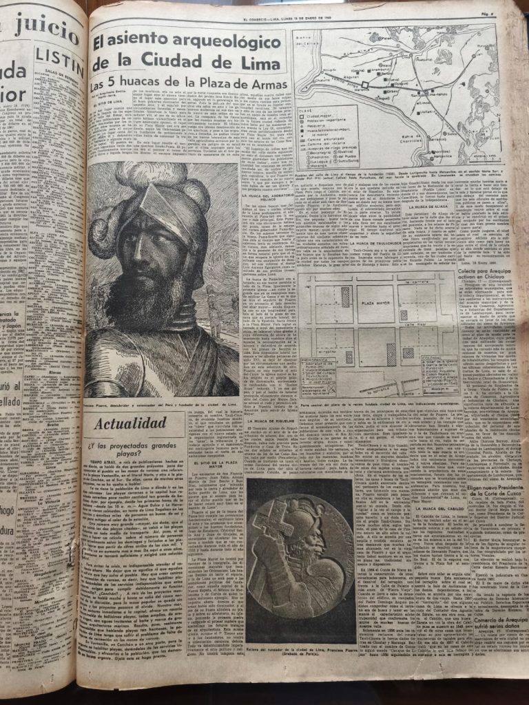 Harth-Terré, E. (1960, 18 de enero). El asiento arqueológico de la ciudad de Lima: Las cinco huacas de la Plaza de Armas. El Comercio, p. 8.